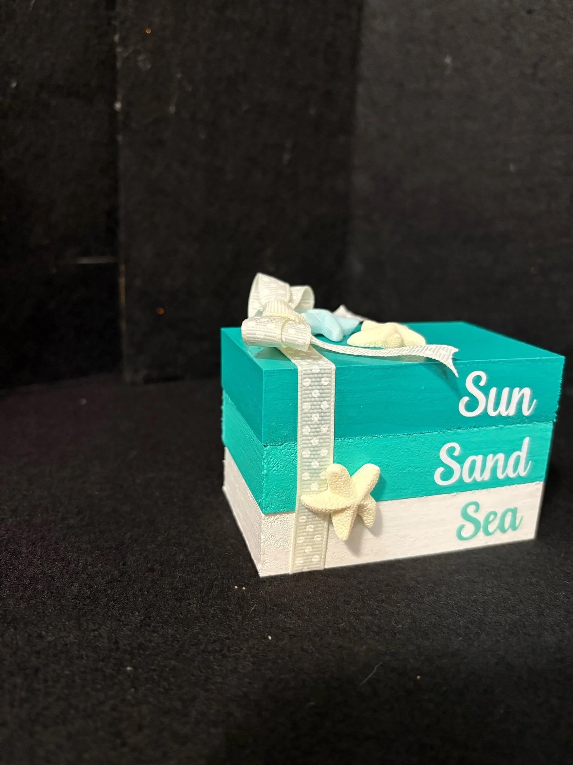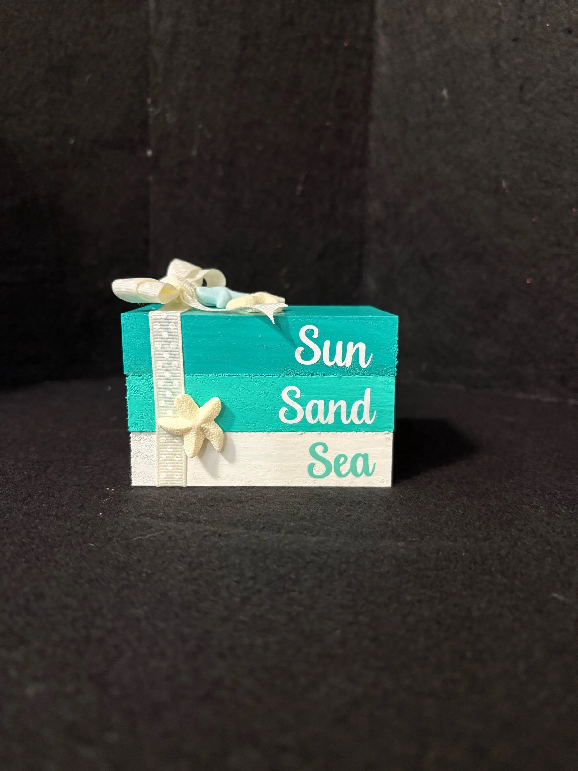 Drift away with this charming trio of tiny wooden books, inspired by sunlit shores, soft sands, and salty sea breezes. Handcrafted with love, it’s the perfect coastal touch for your shelf, tiered tray, or beach-lover’s heart. Pocket-sized paradise!